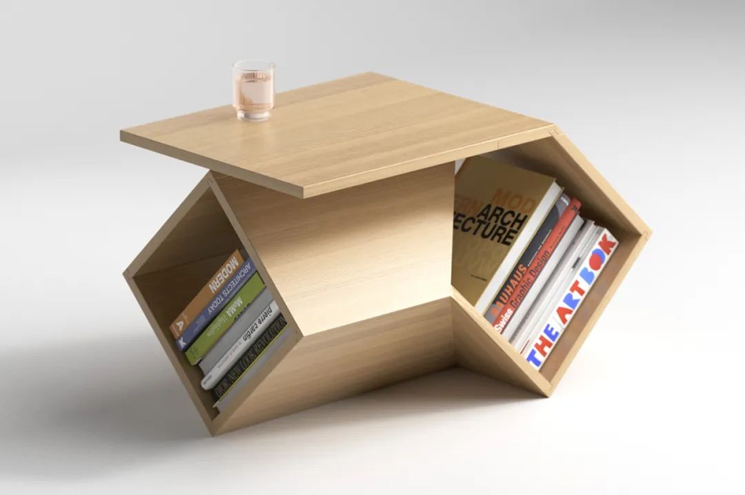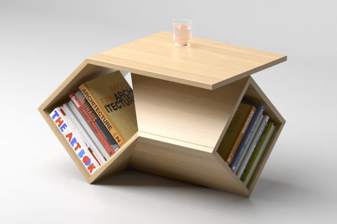 兼作邊桌的獨特書架by Deniz Aktay