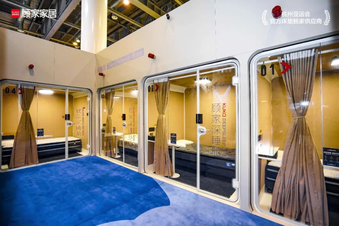 2023年9月18日,亞運主媒體中心生活服務區進入正式運營階段,顧家家居作為杭州第19屆亞運會官方床墊獨家供應商,于主媒體中心構建深睡空間,配備顧家亞運系列深睡床墊、枕頭與24小時全時運營。即日起,顧家深睡艙正式開艙,為各國媒體記者提供四覺一感全方位深睡服務,彰顯大國辦賽的人文關懷和東道主風采。