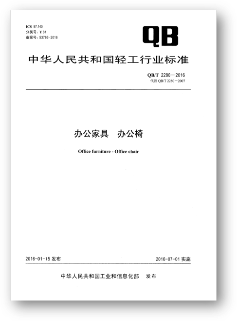 QB/T 2280-2016《辦公家具 辦公椅》標準由工業和信息化部發布并于2016年7月1日實施,標準規定了產品的定義、分類、要求、試驗方法、標志、包裝等,對辦公椅作了系統的、全面的規定,尤其是要求部分,詳細規定了尺寸、形狀和位置公差、外觀、理化性能、力學性能、阻燃性、甲醛釋放量、TVOC和安全性,是所有標準中項目最齊全的,為辦公椅產品質量的評估提供了明確的依據,為企業的生產制造提供了有力的技術支持,同時也為質量監管部門提供了標準上的支撐。標準的實施有效地促進了辦公椅行業的健康發展。