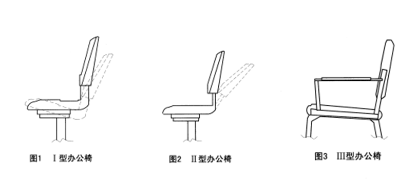 標準按調節方式對辦公椅進行了分類,分為Ⅰ辦公椅、Ⅱ型辦辦公椅和三型辦公椅。其中Ⅰ型辦公椅為椅座和椅背角度均可調節的辦公椅;Ⅱ型辦公椅為只有椅背角度可調節的辦公椅;Ⅲ型辦公椅是椅背、座面、扶手相對位置、角度均不可調節的辦公椅。