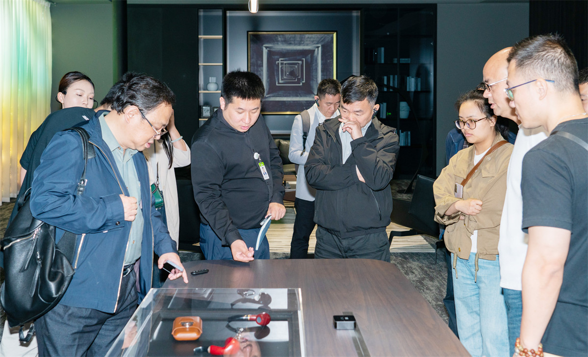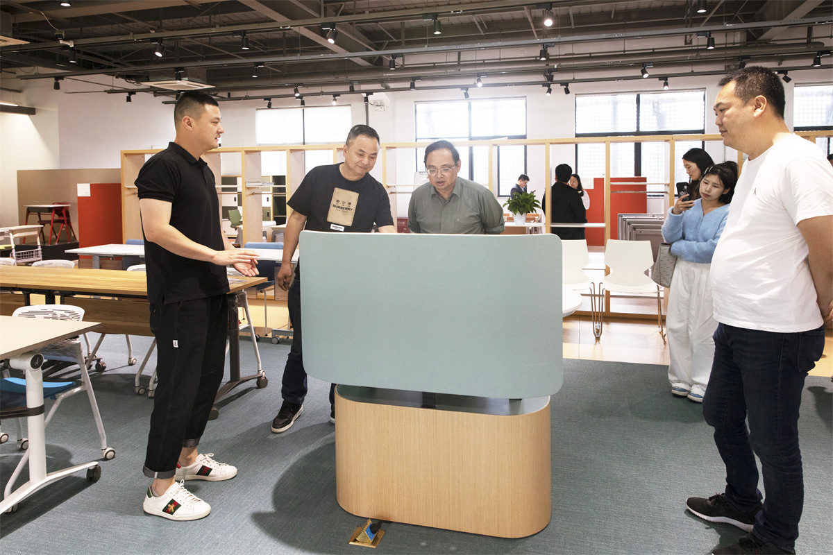 當天上午,考察團參觀了圣奧科技股份有限公司位于杭州蕭山圣奧科創園內家具展廳,此展廳充分展示了圣奧“把自然搬回家”的健康辦公理念。在這里,考察團成員們詳細了解圣奧發展歷程,以及圣奧在辦公家具、校園家具等領域的產品創新與設計理念。圣奧以其高品質、智能化的產品,以及環保可持續的生產理念,贏得了參觀者們的一致好評。