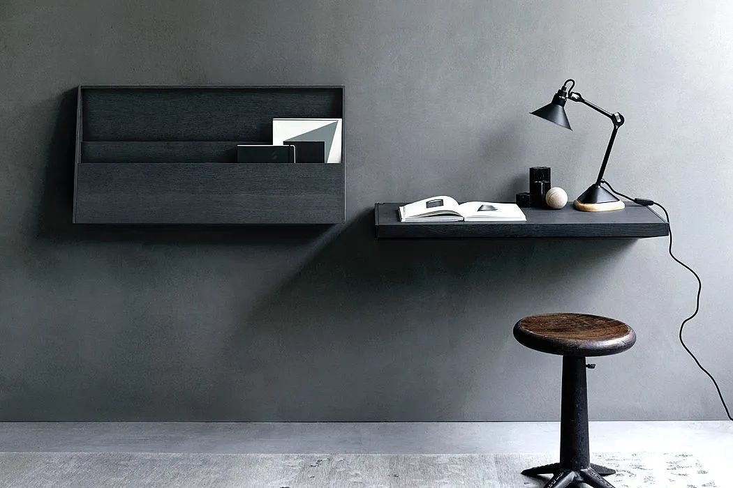 Fju主要由兩個(gè)主要部件組成:一個(gè)安裝在墻壁上的鋼支架和一個(gè)由8mm厚的單板橡木膠合板制成的木制主體。折疊起來(lái),就會(huì)有一個(gè)小的工作空間和一個(gè)光滑的書(shū)寫(xiě)表面。使用結(jié)束后,也只需把東西放在桌子下面的儲(chǔ)物袋里,折疊起來(lái)即可。