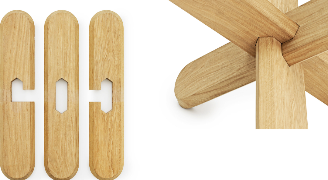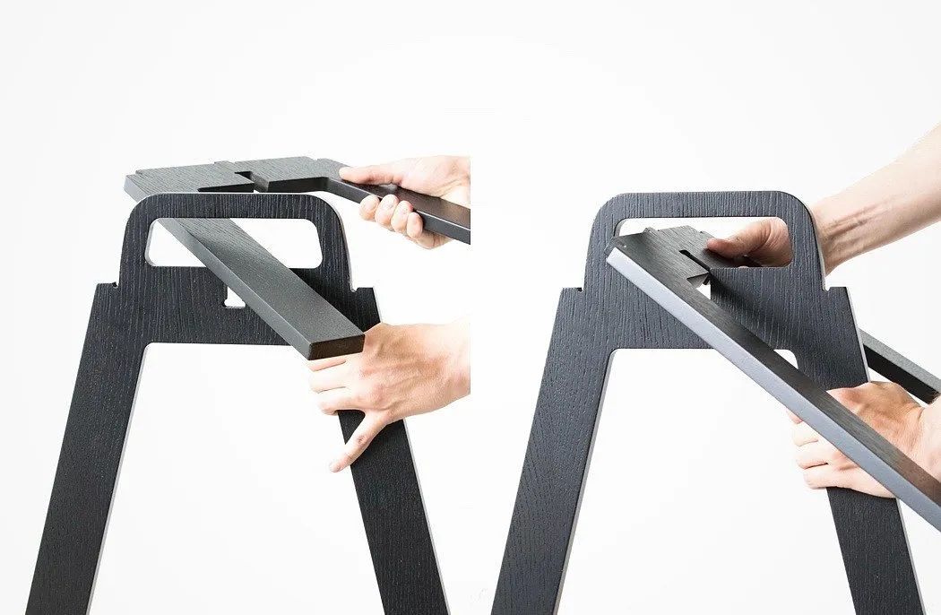 DING TABLE桌面支撐的靈感來(lái)自古老的日本游戲。借助于魔鬼結(jié)的簡(jiǎn)單但神秘的原理,可以在沒(méi)有任何工具的情況下將三條腿安裝到彼此中,并將其合并到一個(gè)神秘物體上。