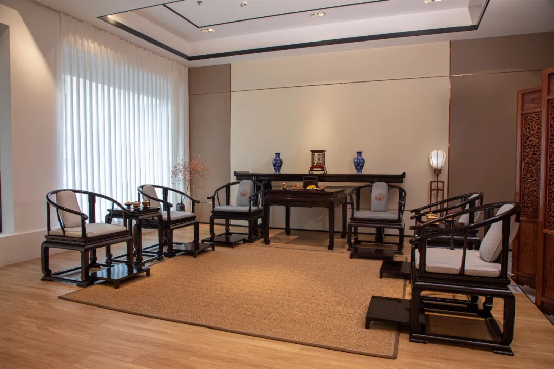 張宏軍對于自身專業(yè)素養(yǎng)的提升從未停歇,他將業(yè)余時間投入到三項(xiàng)主要活動中:一是不斷學(xué)習(xí),不僅限于木工、雕刻、繪畫等傳統(tǒng)技藝,還涵蓋現(xiàn)代空間設(shè)計理念;二是深入車間,從手工卯榫到機(jī)械加工,從木性控制到結(jié)構(gòu)工序,從雕刻到油漆,他都全面掌握,力求將傳統(tǒng)技藝與現(xiàn)代設(shè)計完美融合,確保每一件作品都能忠實(shí)反映其設(shè)計理念;三是緊密貼近市場,以用戶需求為導(dǎo)向,不斷在產(chǎn)品設(shè)計、空間美學(xué)等方面尋求創(chuàng)新與突破。