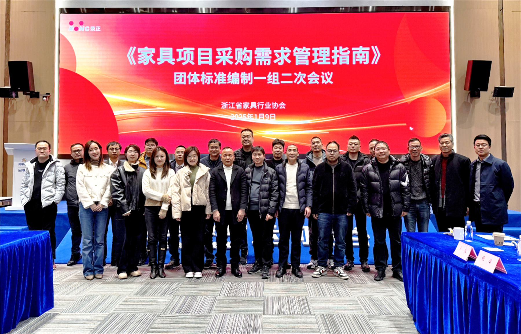 2025年1月8日至10日,浙江省家具行業協會組織專家及參編單位,分別在浙江榮正家具有限公司、杭州達文伯藝家具有限公司、浙江榮華家具有限公司成功召開了《家具項目采購需求管理指南》團體標準編制小組的二次會議。此次會議主要是對了《家具項目采購需求管理指南(工作組討論稿)》進行深入討論,進一步完善標準內容,為后續工作奠定堅實基礎。