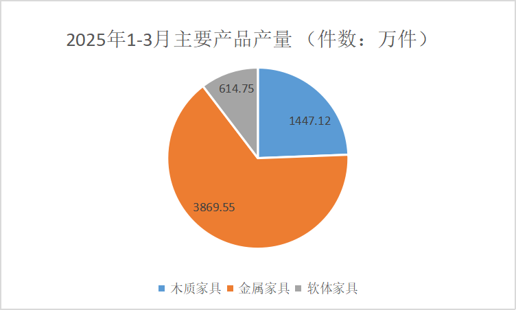 金屬家具3869.55萬件,累計下降4.4%,3月單月完成產(chǎn)量1459.03萬件,下降4.8%;