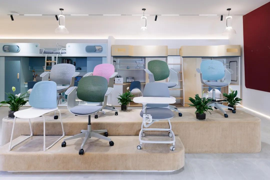 考察團(tuán)一行首先參觀了惠美的展廳,展廳內(nèi)陳列著各類教育家具、公寓家具等產(chǎn)品。從設(shè)計(jì)新穎的校園課桌椅到功能齊全的公寓家具,每一件產(chǎn)品都展現(xiàn)了惠美工貿(mào)在家具制造領(lǐng)域的精湛工藝和創(chuàng)新設(shè)計(jì)。考察團(tuán)成員紛紛駐足觀看,不時(shí)與工作人員交流,對(duì)產(chǎn)品的材質(zhì)、功能和設(shè)計(jì)理念表示高度認(rèn)可。
