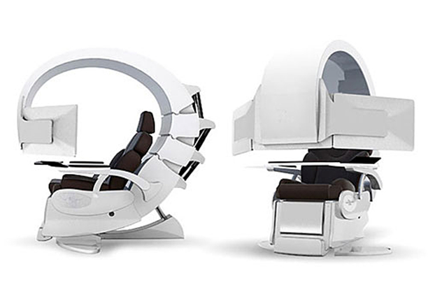 在各類科幻片和動(dòng)漫中,宇宙戰(zhàn)艦的戰(zhàn)艦駕駛員都會有一張狂霸酷拽屌的不行的駕駛座,現(xiàn)在已經(jīng)有了讓你們實(shí)現(xiàn)終極幻想的機(jī)會——Emperor200 智能工作游戲站,現(xiàn)在只要45000美元哦親!仿生學(xué)設(shè)計(jì)的座椅,模擬動(dòng)物脊髓的造型,不僅方便用戶自由調(diào)整自由調(diào)整屏幕的高度,同時(shí)背后的座椅也會自動(dòng)調(diào)整角度以給你最舒適的坐姿,這對于長期玩游戲和工作的人來說是一個(gè)很人性化的設(shè)計(jì)。
