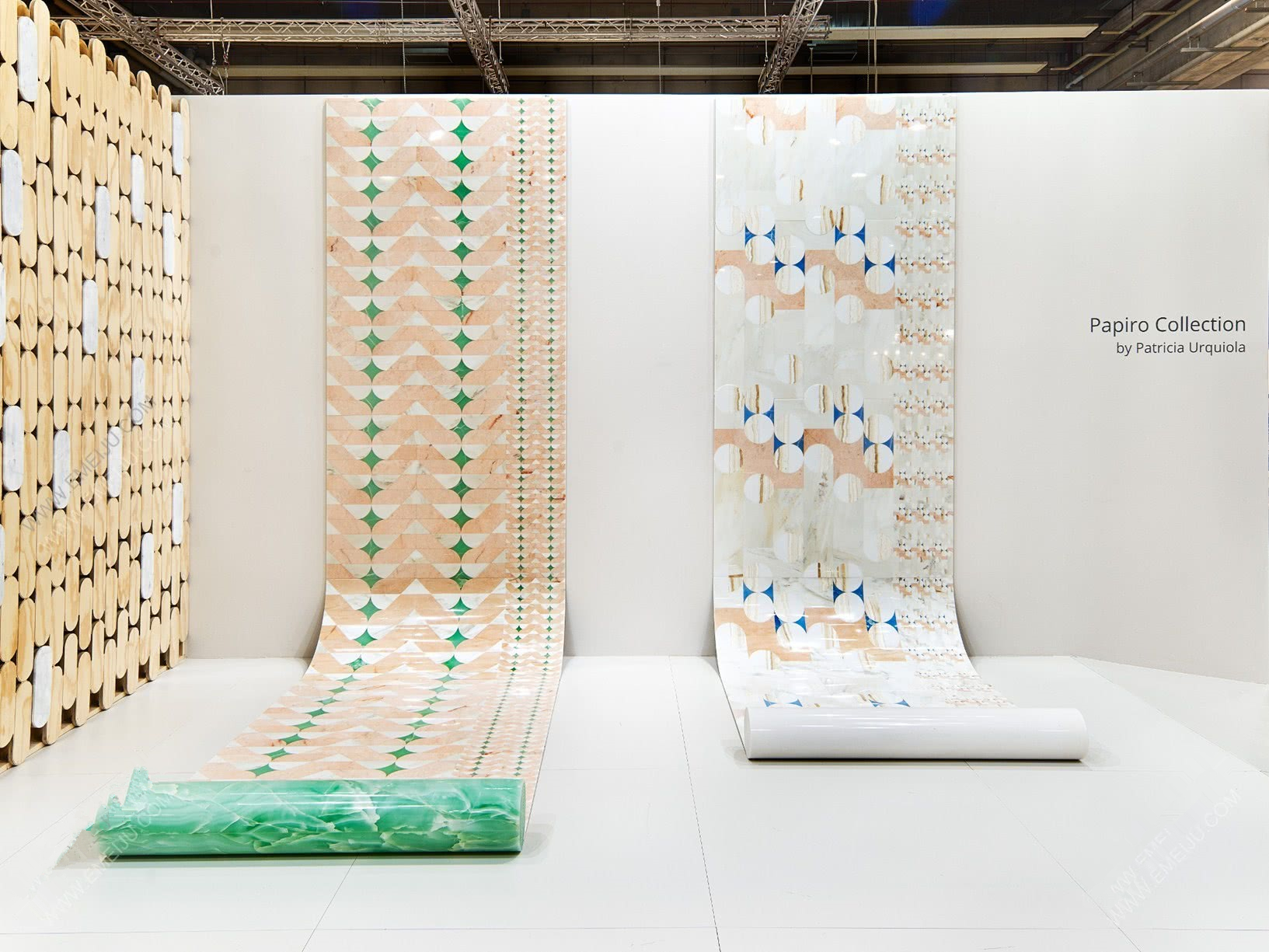 Papiro系列的五個圖案分別是Bianco Sivec、Bardiglio、Bianco Carrara、Rosa Portogallo和salmon pink。這些圖案在語言和形式上都是多樣化的,都采用了柔和的色調、材料以及由玫瑰色,海藍色和黑瑪瑙鑲嵌。
