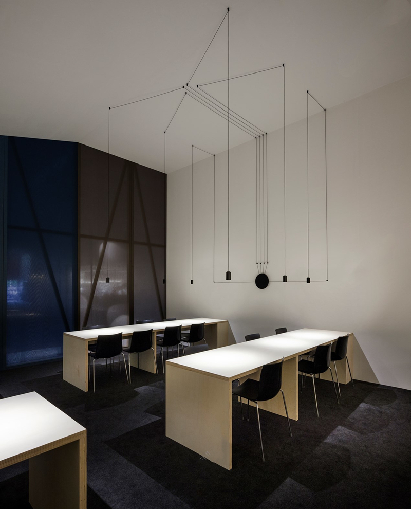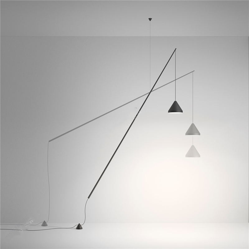由解構設計定義的,Arik Levy設計的North Floor吊燈結合了落地燈和吊燈的特色,Levy的目的是在視覺上將地板和天花板連接起來,而無需對墻壁進行布線,而是將燈光精確地放置在需要的地方。它由三個獨立的部分組成,一個三角形的鋁制燈罩,一個LED供電的光源,一個細長的碳纖維桿和一個與電纜相連的地面配重,代表了一個動態的可調部件系統。