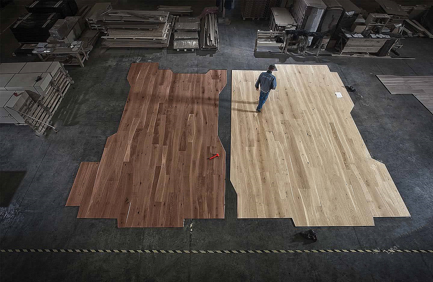 他們的標(biāo)志性產(chǎn)品Bolefloor被稱為世界上第一塊天然彎曲的硬木地板。進入工廠的每塊地板都將被掃描和存儲,并且每收到一個新訂單,設(shè)計師就會使用其自定義軟件,將不同板的形狀進行匹配,以創(chuàng)建適合客戶住戶的結(jié)構(gòu)。