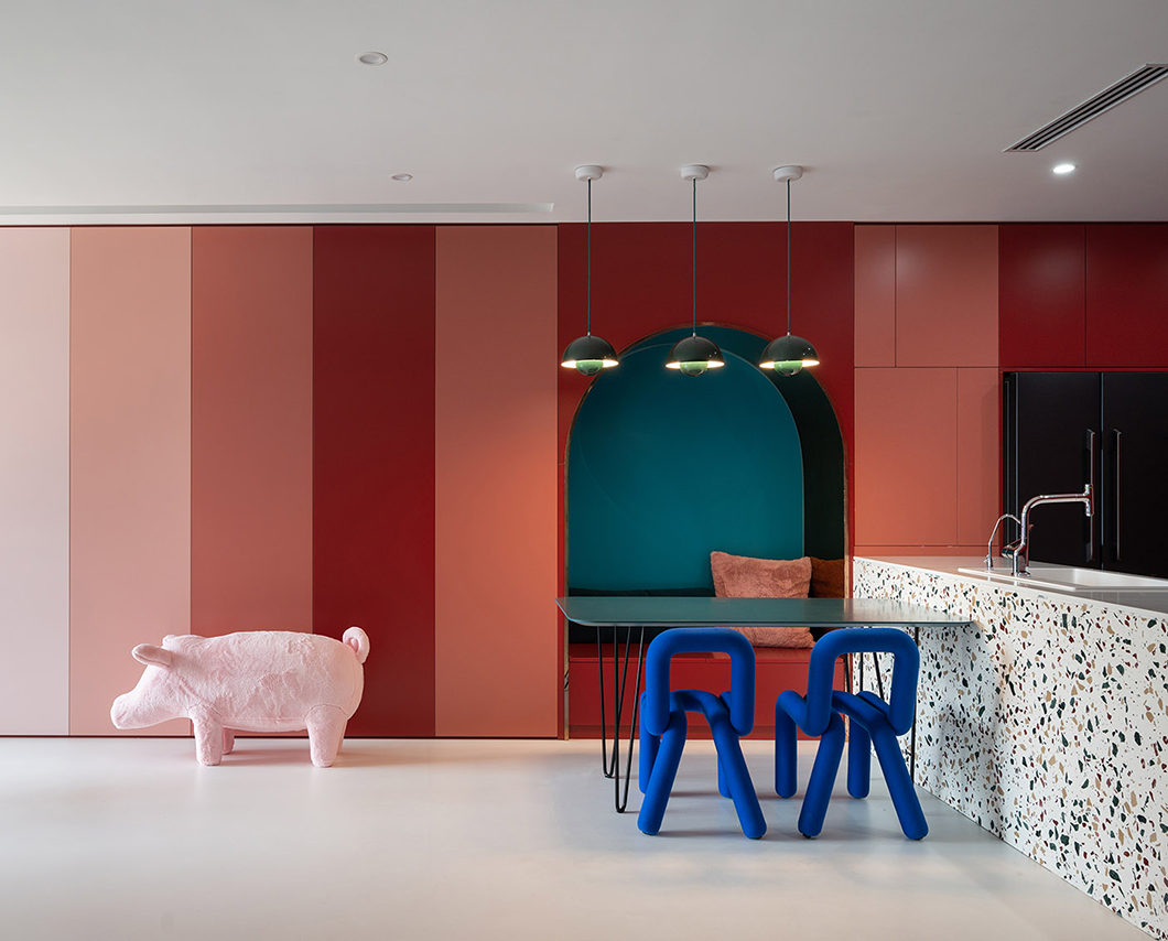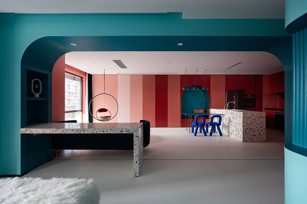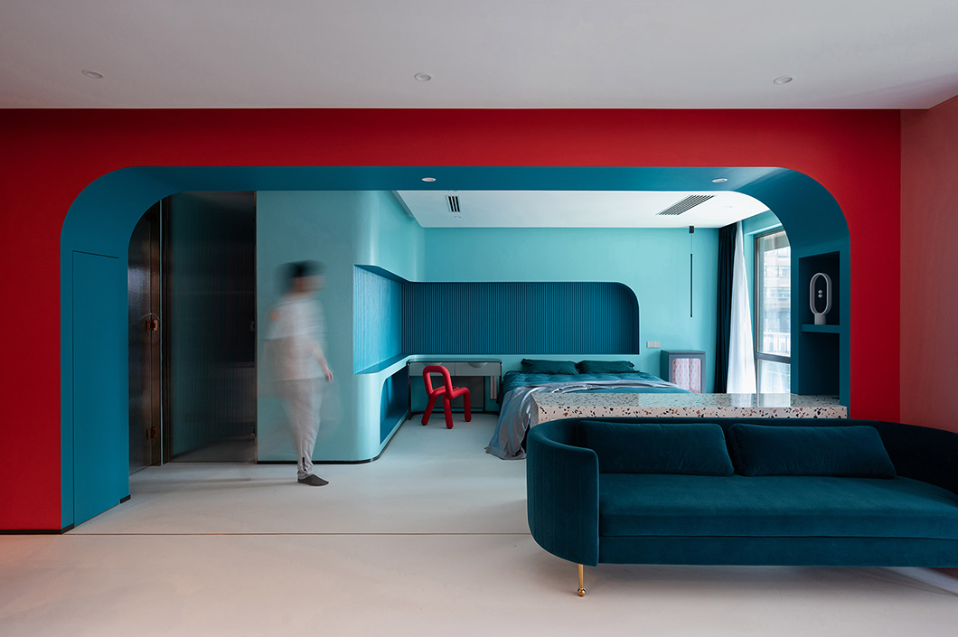 考慮業(yè)主一人獨(dú)居且光線較暗,設(shè)計(jì)師打通兩個(gè)開間的隔墻,形成一個(gè)開放的混合空間。