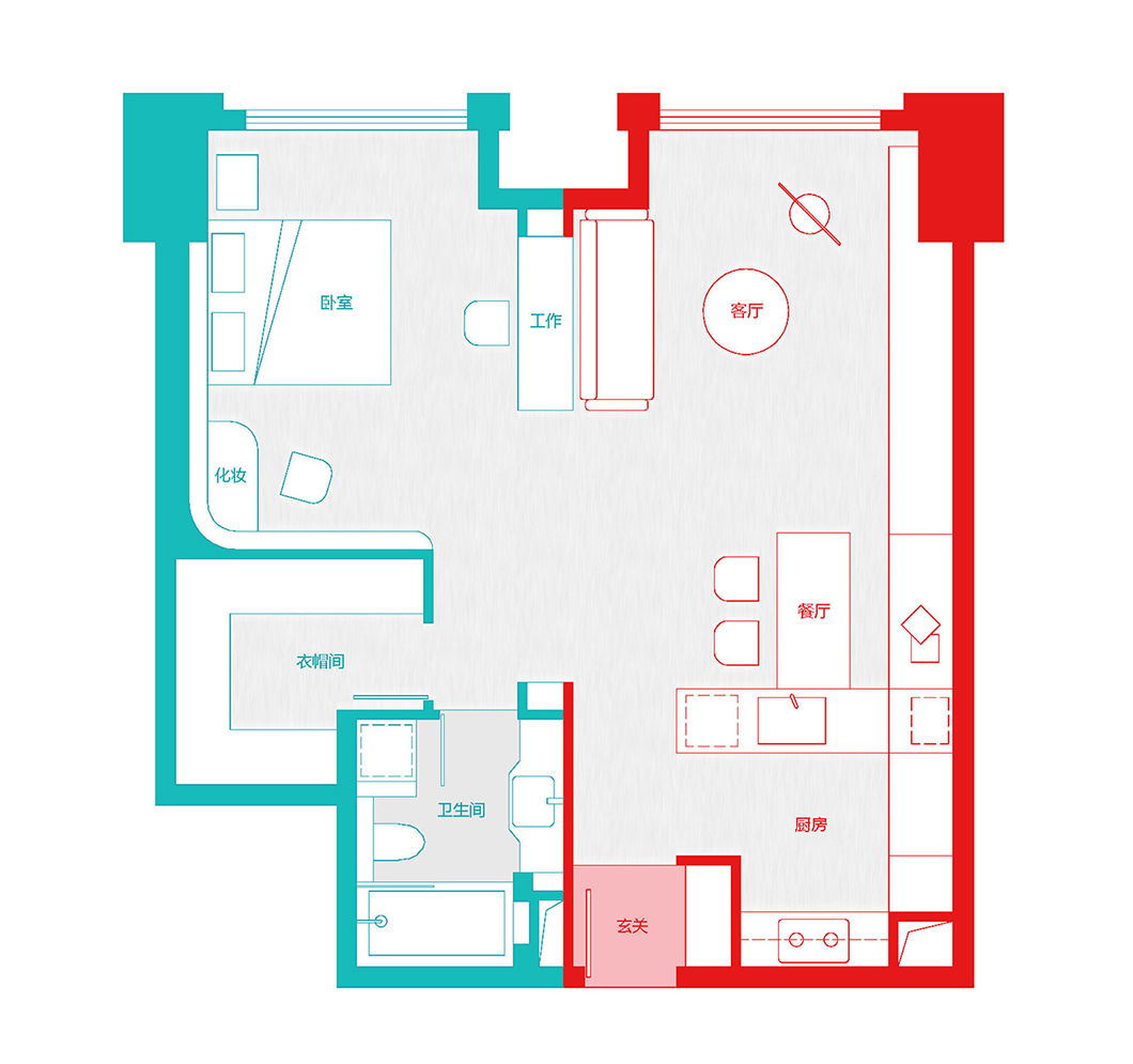 增加了地面收納,更衣間等功能。