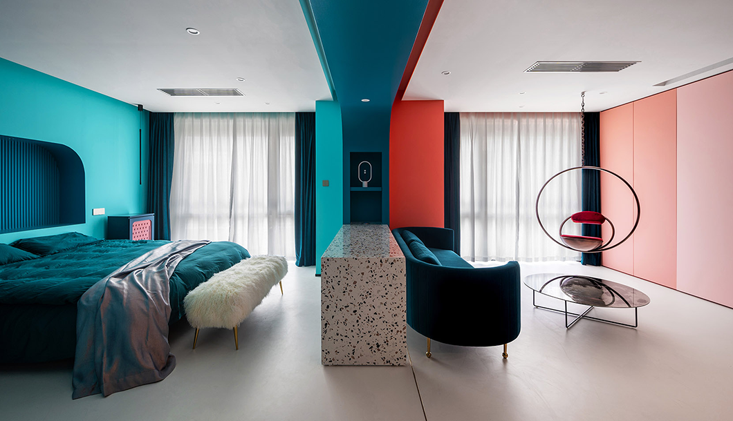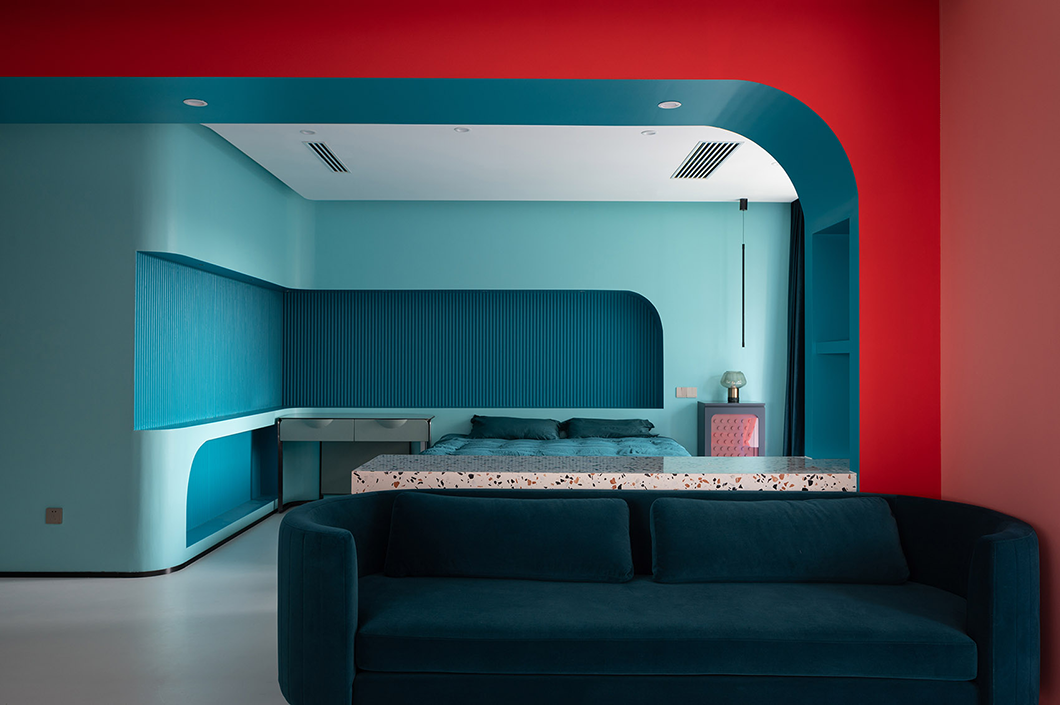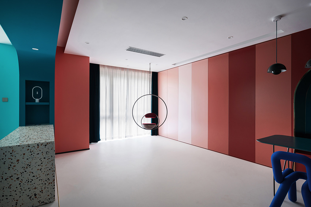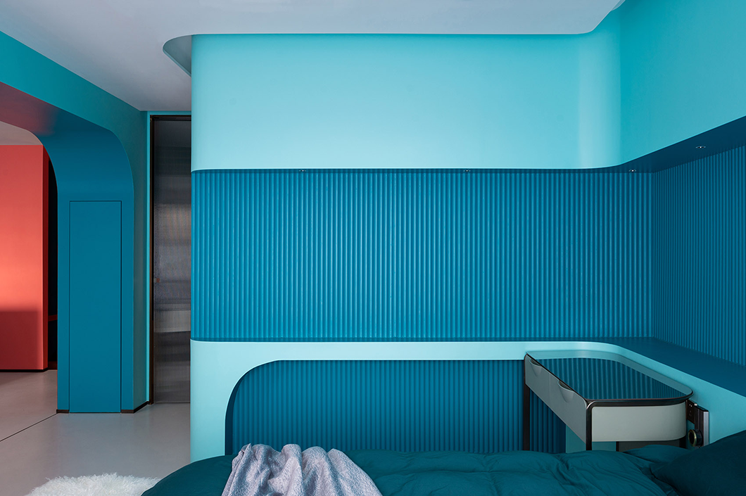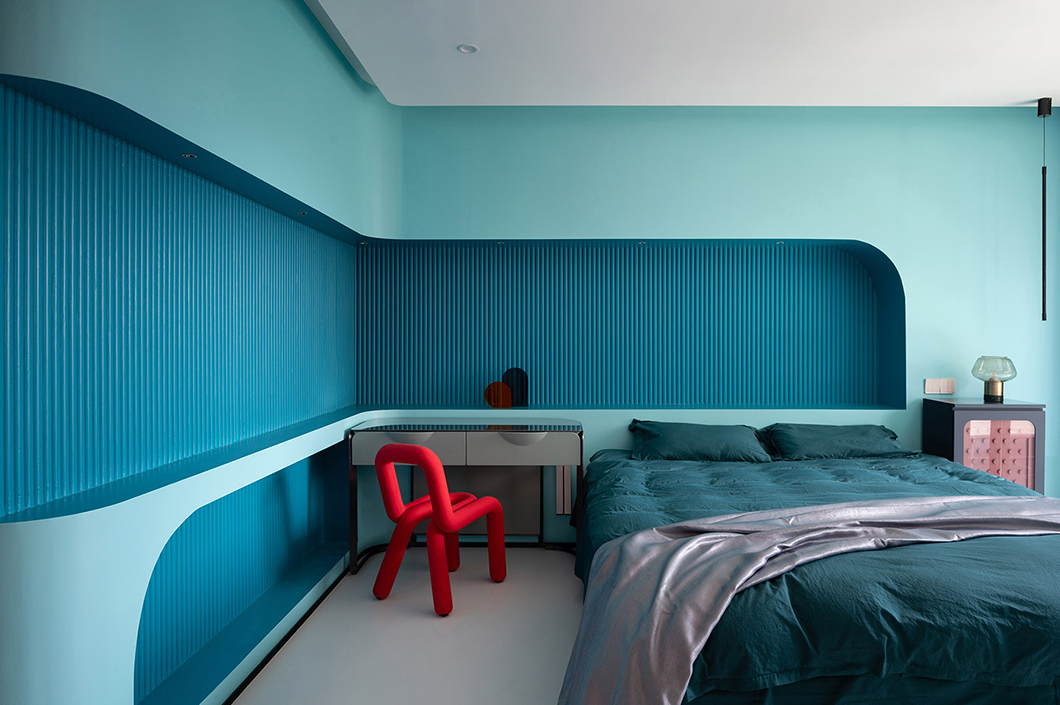 整個(gè)空間采用冷暖兩種色系,曲線的造型處理,在滿足功能需要的同時(shí)增加使用者不同的體驗(yàn)感,與業(yè)主對色彩的喜好相符。
