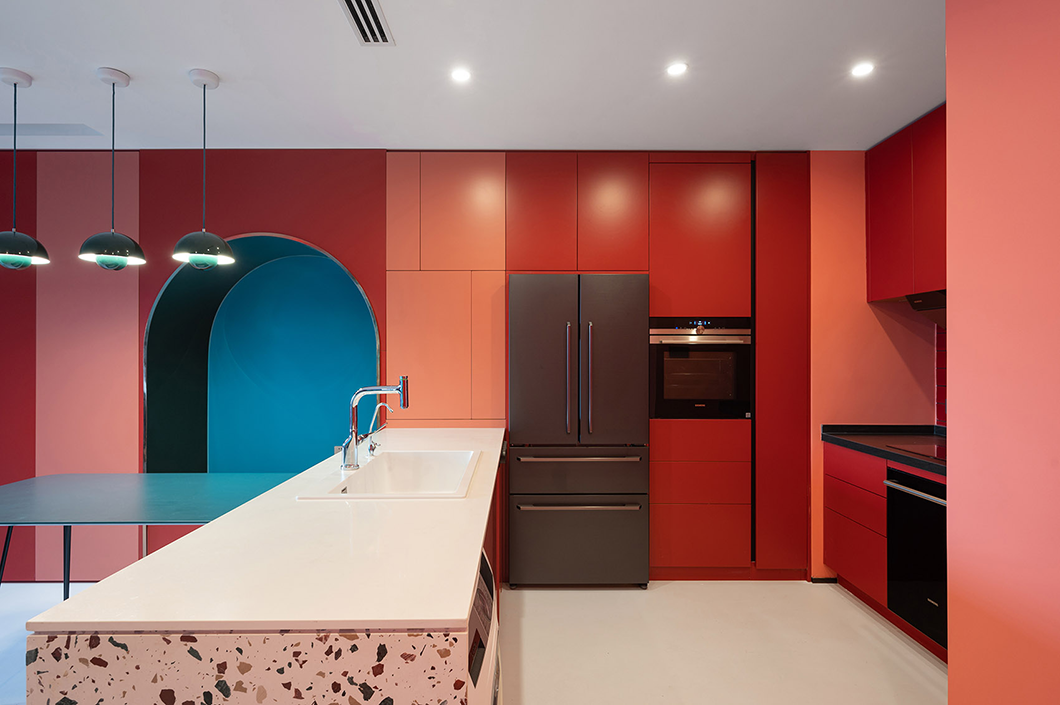 根據(jù)使用者習(xí)慣布置功能齊全的廚房空間。