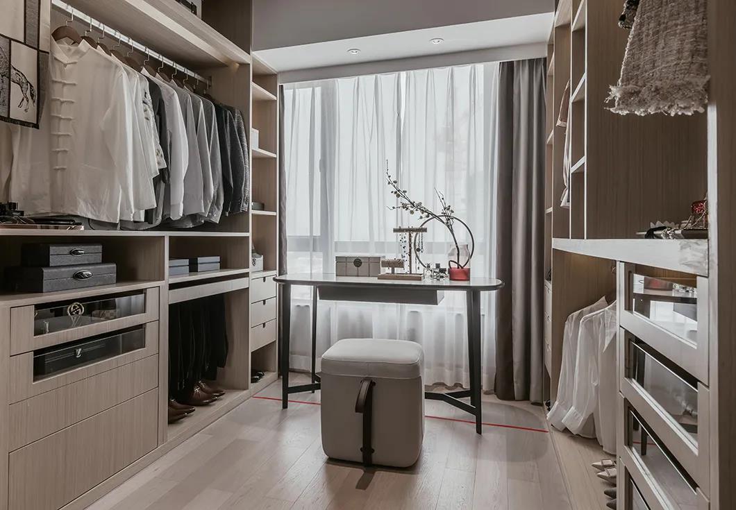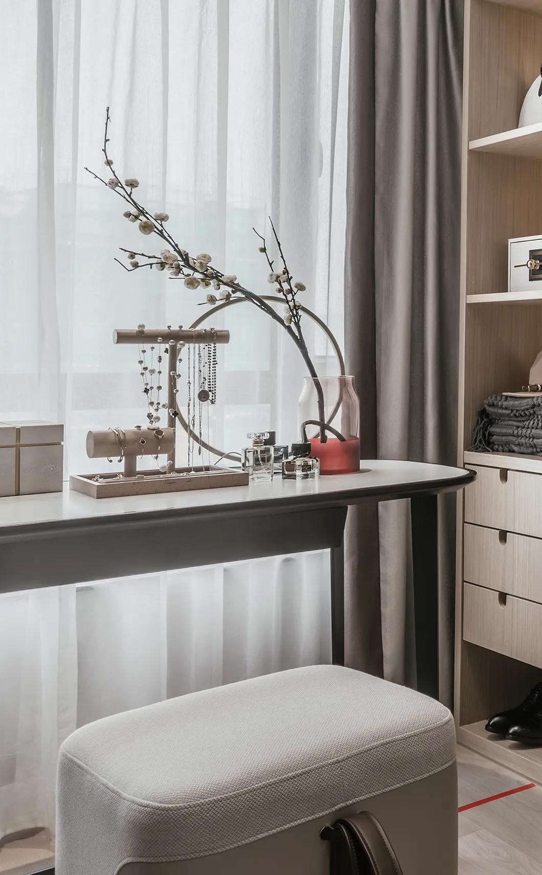 云想衣裳花想容。衣帽間增強(qiáng)了空間的流動(dòng)性。佳人在此精心梳妝打扮,細(xì)致打磨的小物件透露著不經(jīng)意的詩情畫意。