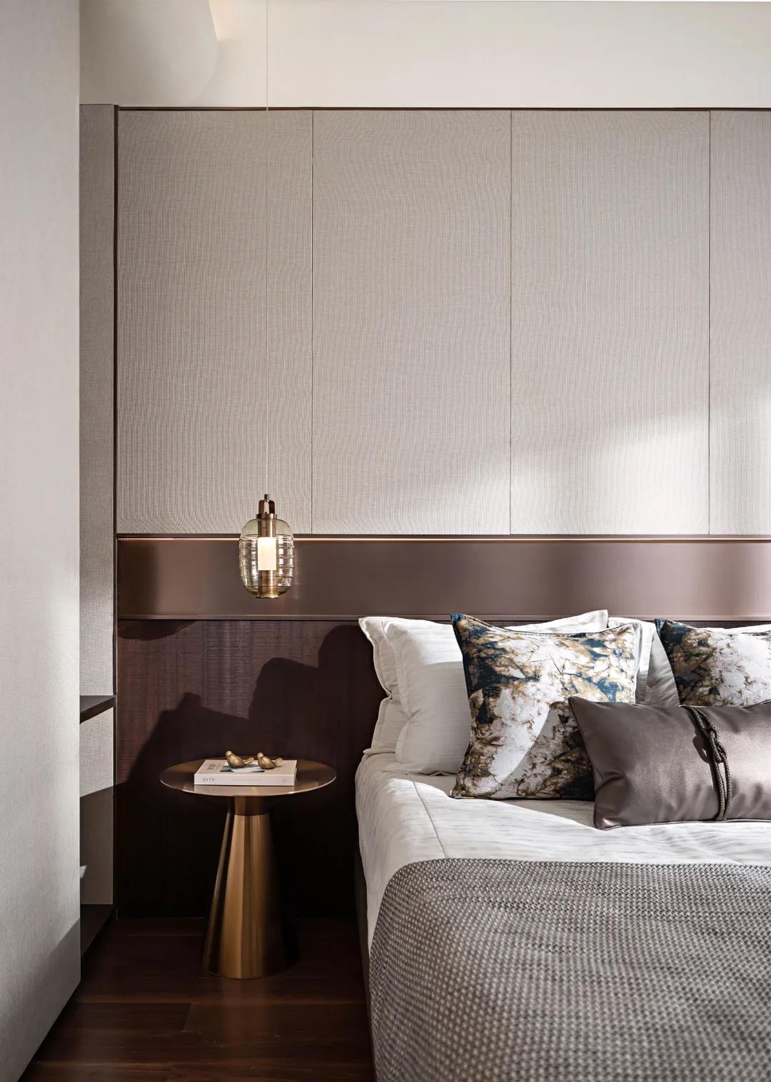 次臥的意境凝練著屬于深秋的美,于低調的表達中緩緩呈演出高雅的精神魅力。邊桌、吊燈、掛畫等精致軟飾的運用,為空間增添一份靈動,也彰顯出居住者一定的生活品味。