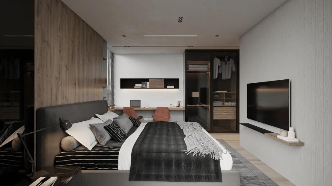 溫和的淺木色讓臥室內(nèi)斂沉穩(wěn),