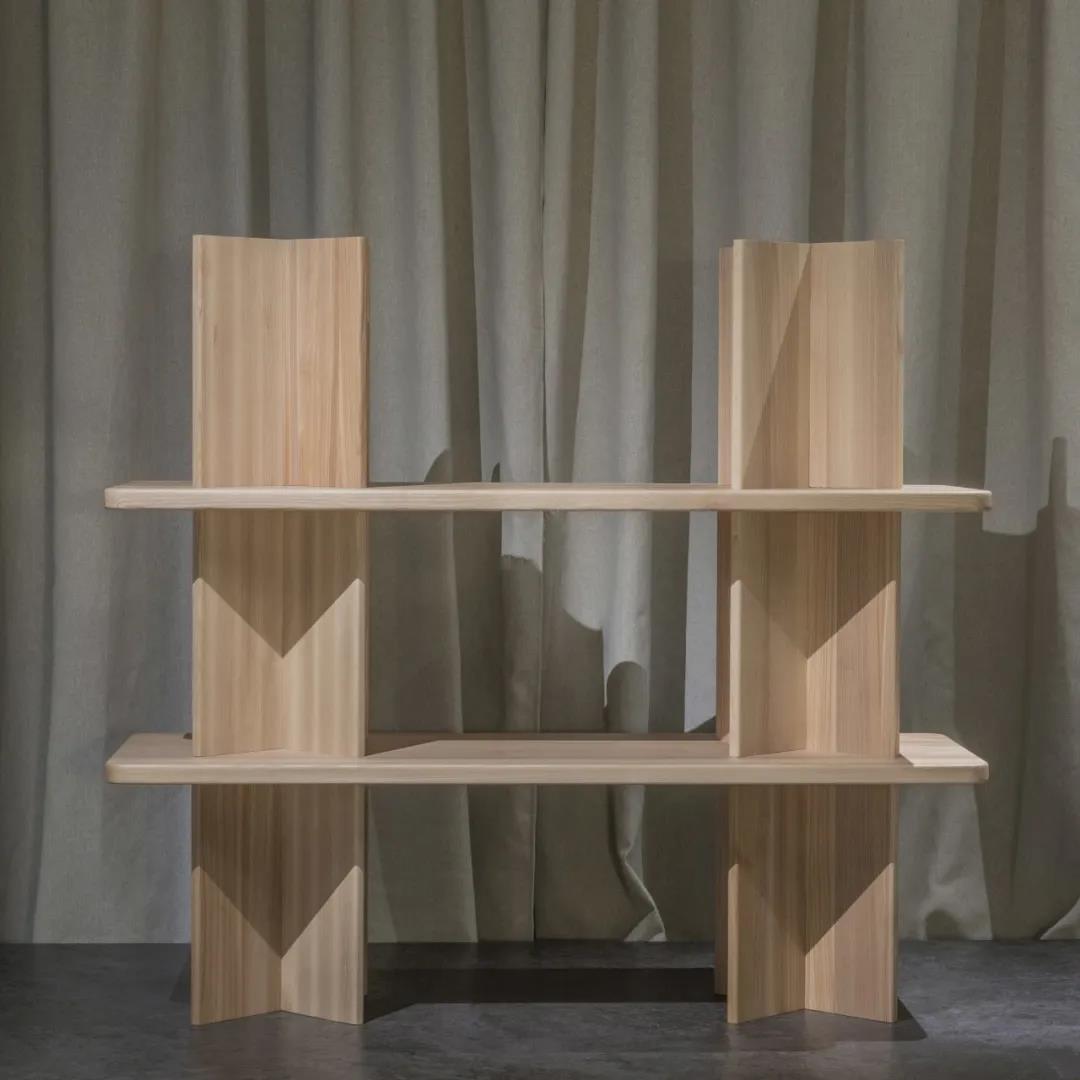 該系列中的最新產(chǎn)品是紀(jì)念碑書(shū)架系統(tǒng),這是由新興的本地工作室Cocorico設(shè)計(jì)的書(shū)柜。該設(shè)計(jì)包括兩個(gè)大的十字形立柱,它們支撐著一對(duì)細(xì)長(zhǎng)的架子。沒(méi)有可見(jiàn)的固定物,使作品具有統(tǒng)一的美感。