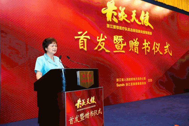中國工程院院士李蘭娟,浙江省人大常委會原副主任、浙江省文史館館長王永昌,浙江省衛(wèi)健委副書記夏建成,浙江省人民政府地方志辦公室主任、《最美天使》編委會主任潘捷軍出席并講話。首發(fā)及捐贈儀式由浙江圣奧慈善基金會會長、《最美天使》主編鄭明治主持。