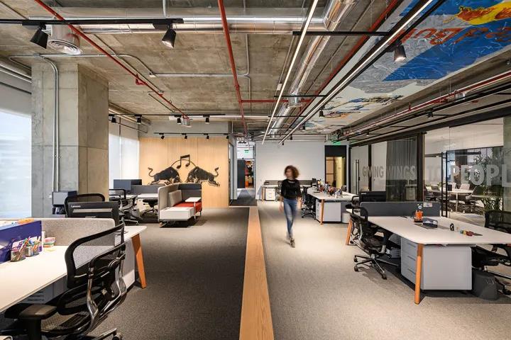 功能飲料品牌紅牛Red Bull,在埃及開羅新設了一處辦公室。粗獷的混凝土樓板映襯著各式極限運動的涂鴉創作,帶來強烈的視覺沖擊和滿滿激情能量。本案由建筑和室內設計公司Eklego Design設計團隊打造。