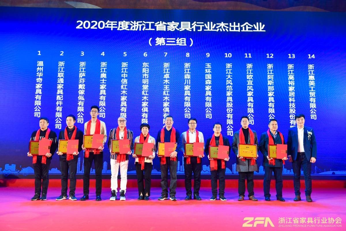 晚宴表彰2020年度浙江省家具行業(yè)抗疫愛心企業(yè)、領(lǐng)軍企業(yè)、杰出企業(yè)、精英企業(yè)、省級優(yōu)秀家具市場并進行授牌。