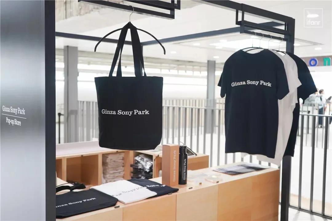 除了 THE CONVENI,索尼也在這一層里出售Sony Park 的紀念品,不過相比于商品琳瑯滿目的前者,索尼的紀念品商店僅有一個攤位。攤位出售著Sony Park的T恤、帆布袋、水壺、貼紙以及還有從Sony Building拆卸下來的百葉窗小塊。