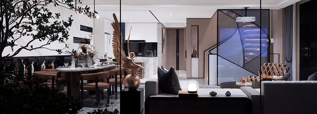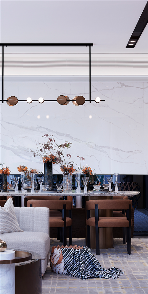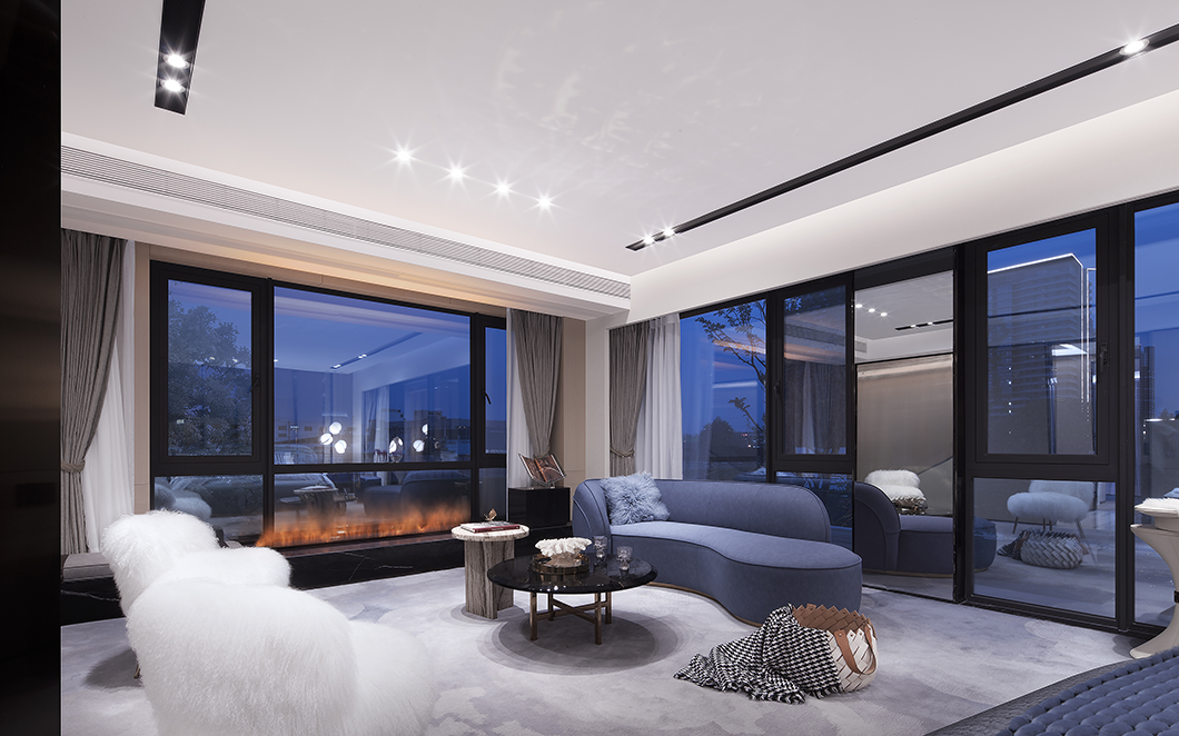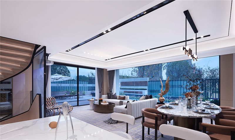 客餐廳采用大橫廳的設計,大空間尺度的客廳和超長的景觀陽臺完美融合。