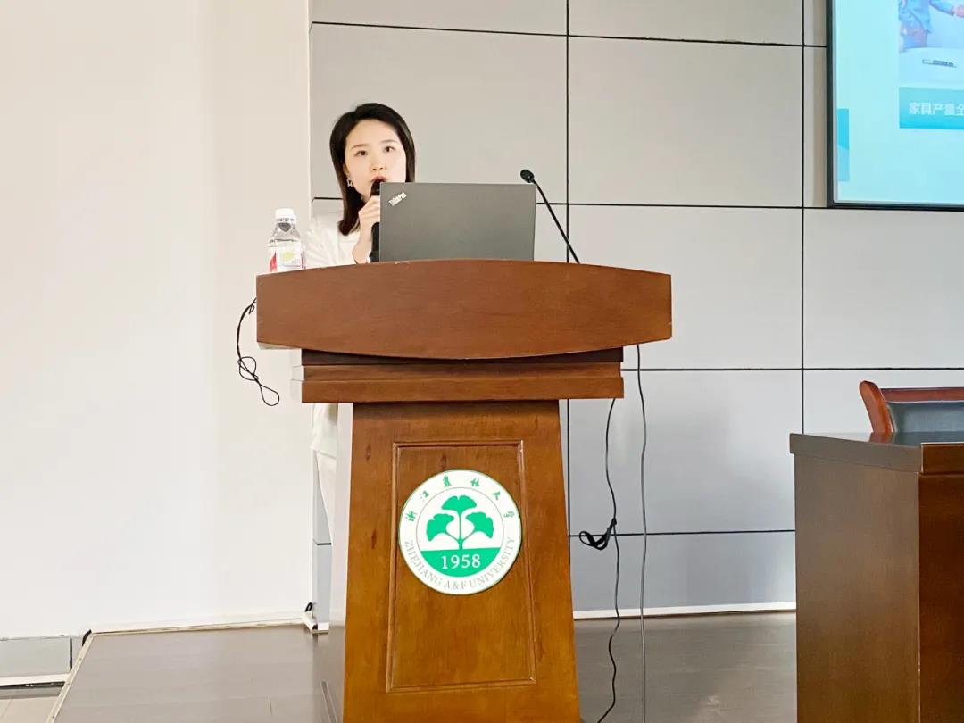 本次活動邀請了浙江農(nóng)林大學(xué)畢業(yè)生——浙江省家具行業(yè)協(xié)會副秘書長兼黨支部書記顧佳佳女士、浙江優(yōu)格實業(yè)有限公司定制事業(yè)部副總查群賢女士為2022屆畢業(yè)生分享她們自農(nóng)林大學(xué)畢業(yè)之后的工作經(jīng)驗與感悟。