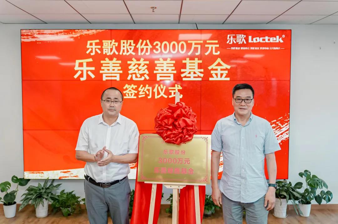 2021年9月23日下午,樂(lè)歌股份3000萬(wàn)元樂(lè)善慈善基金簽約儀式在樂(lè)歌全球營(yíng)銷研發(fā)總部舉行,鄞州慈善總會(huì)會(huì)長(zhǎng)陳振國(guó)、副會(huì)長(zhǎng)楊亞飛、副秘書長(zhǎng)周良忠及蔣兆銘,樂(lè)歌董事長(zhǎng)項(xiàng)樂(lè)宏、常務(wù)副總裁茅劍輝、副總經(jīng)理朱偉及泮云萍等領(lǐng)導(dǎo)代表出席了本次活動(dòng)。