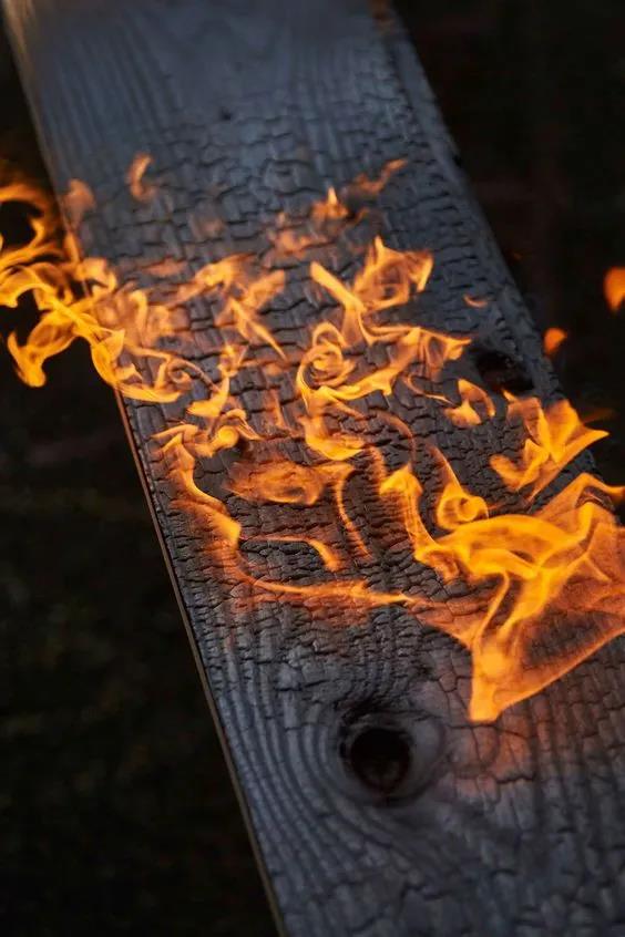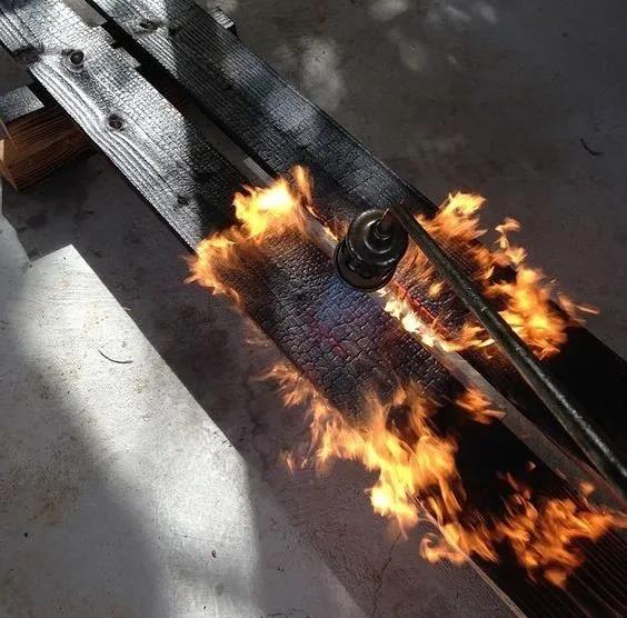 現代燒杉板多用噴火槍或機器燃燒,溫度可控且燃燒均勻。在對木材進行炭化處理時又不會將其點燃,炭化過程更為方便.