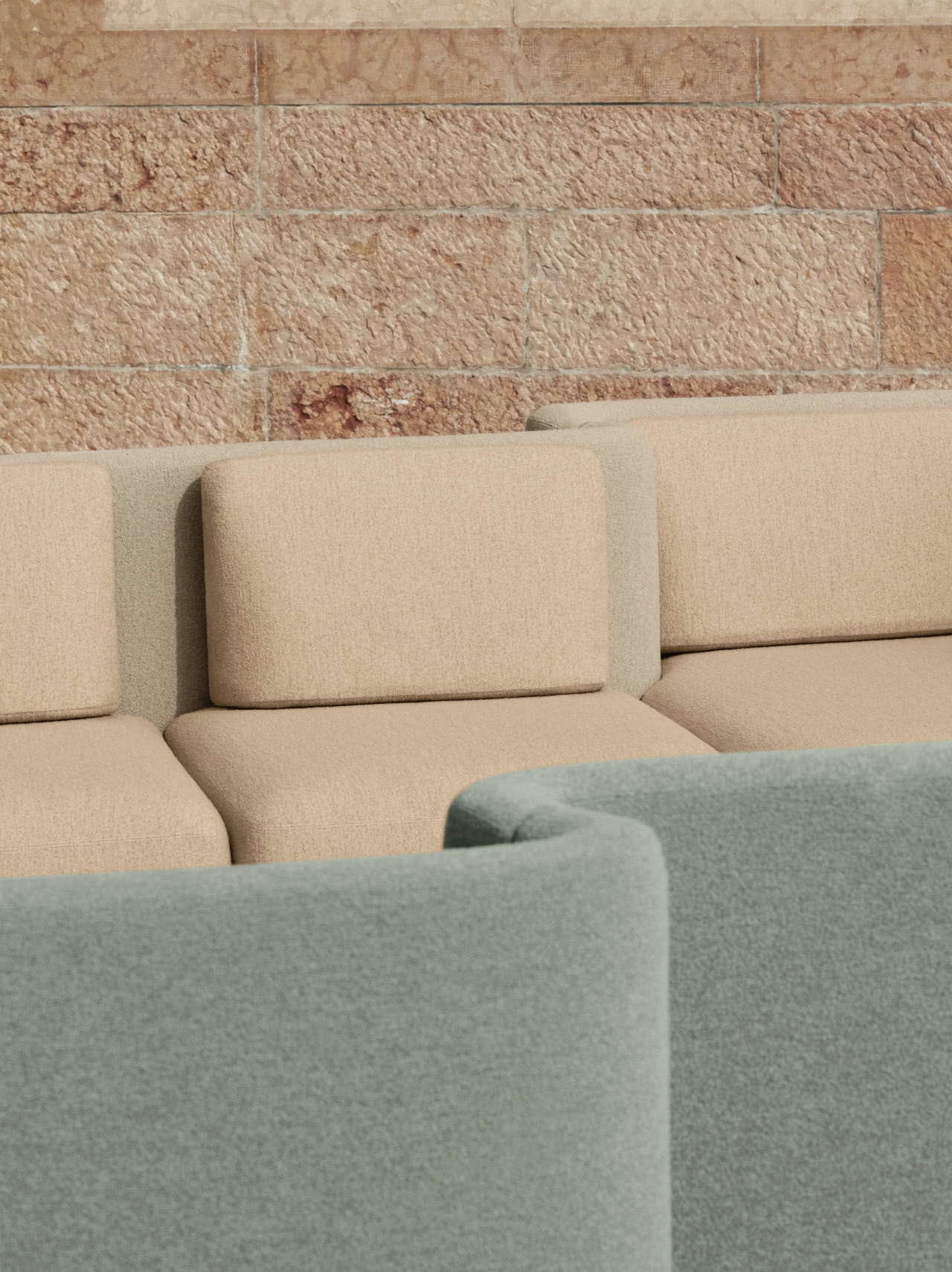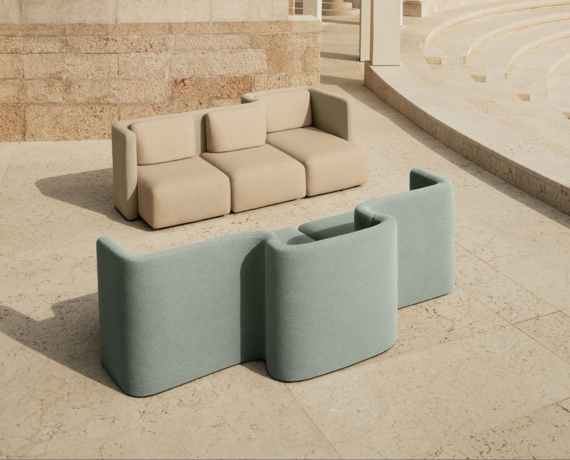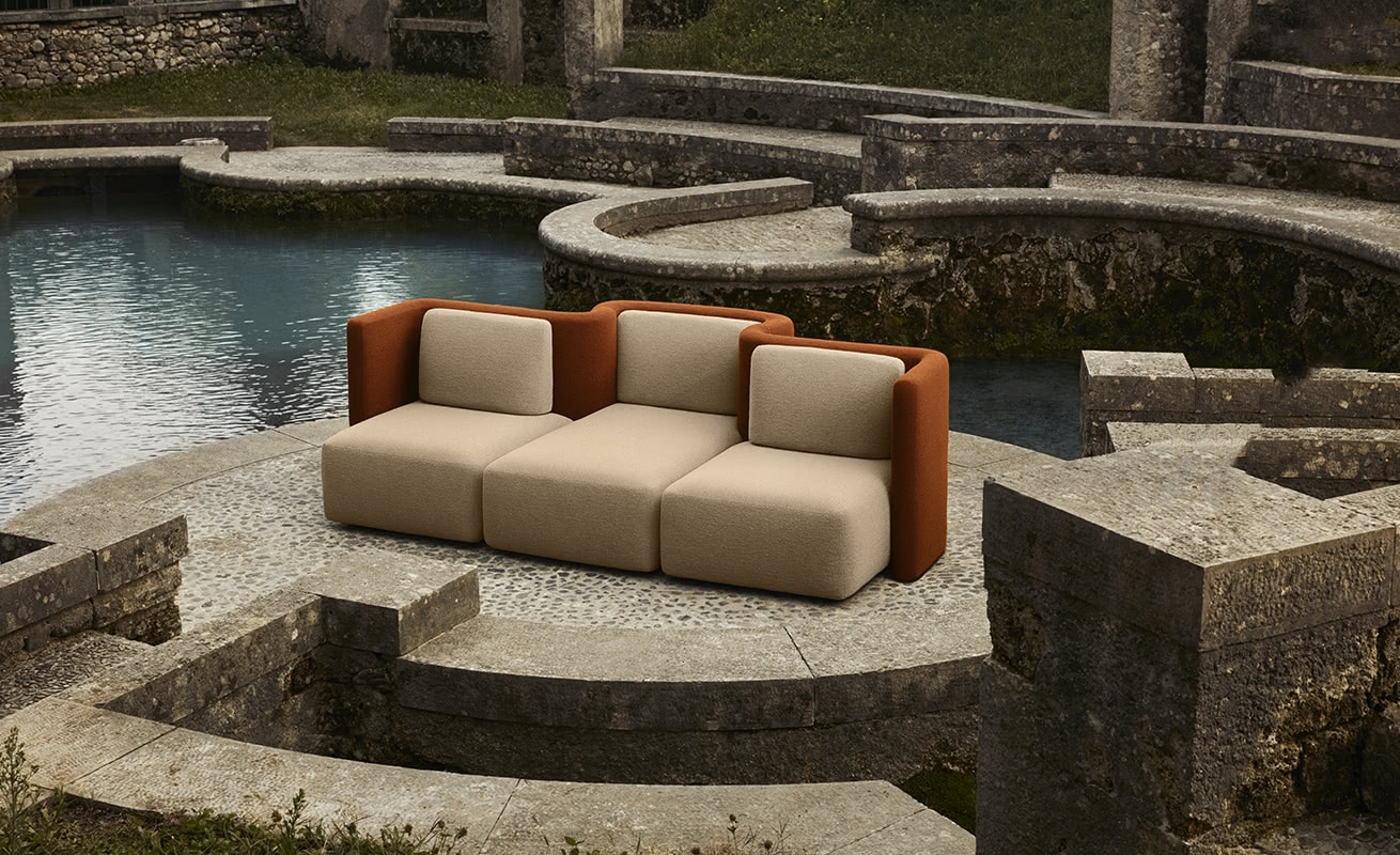 中央骨架是一個垂直元素,可繪制褶皺曲線,以準備在正面和背面容納不同深度的坐墊單元。Saba家具的多種可能的配置賦予了一種“混合型”且靈活的沙發。