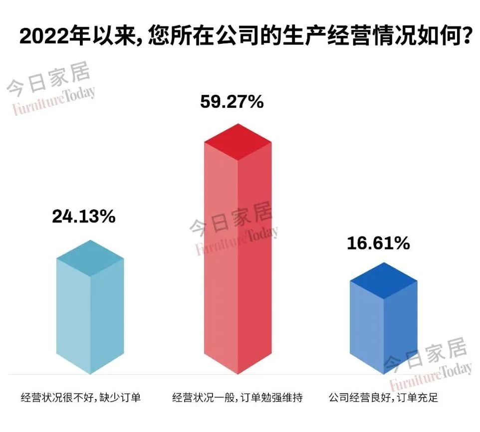 “消費是所有問題的問題,”2022年以來,相當一部分定制企業的經營遇到了巨大挑戰。不久前,今日家居聯合豪邁集團發起的《2022定制家具生存狀況及信心調研》顯示,參與調研的572位企業代表中,有59.27%的被調研企業表示經營狀況一般,訂單只能勉強維持。