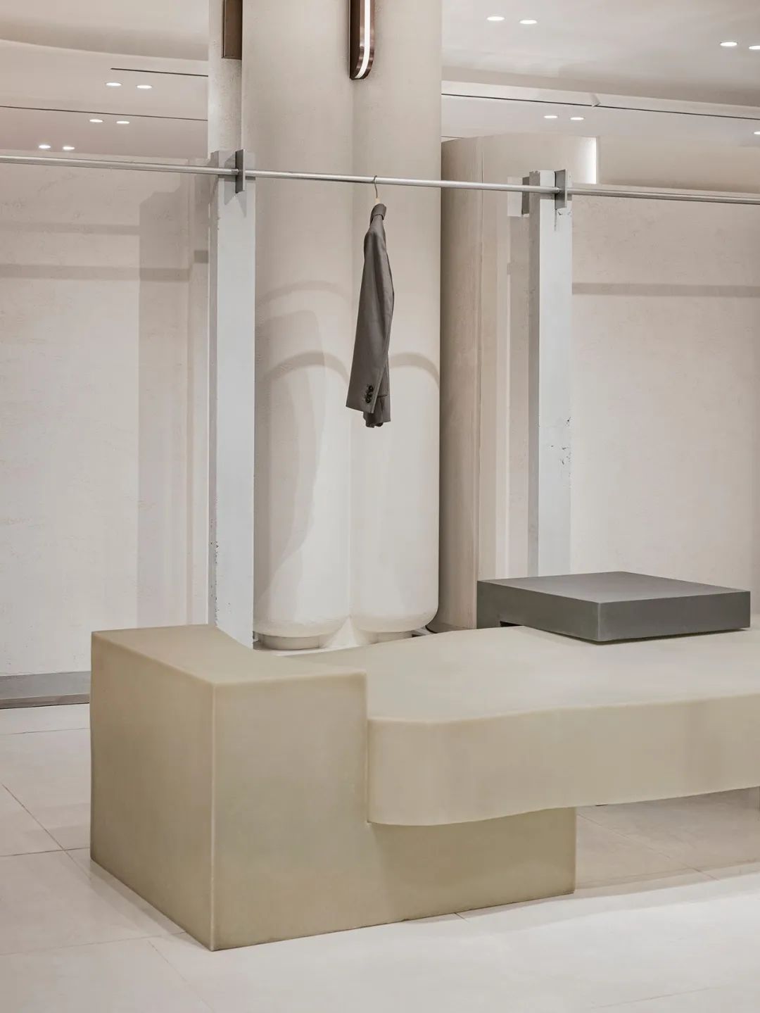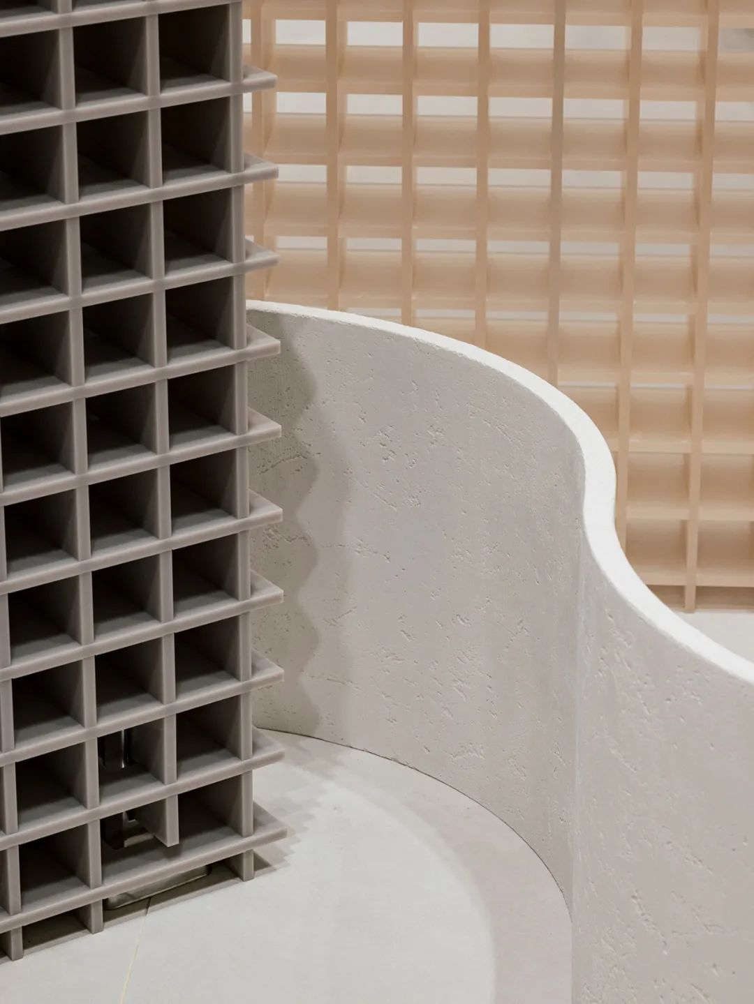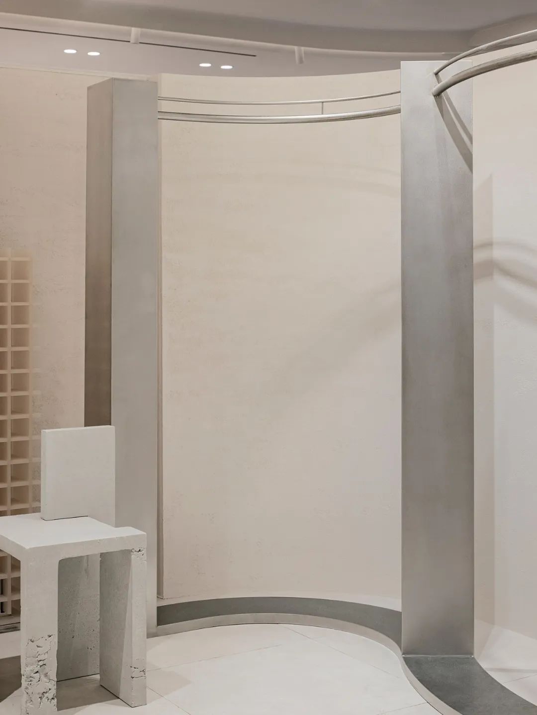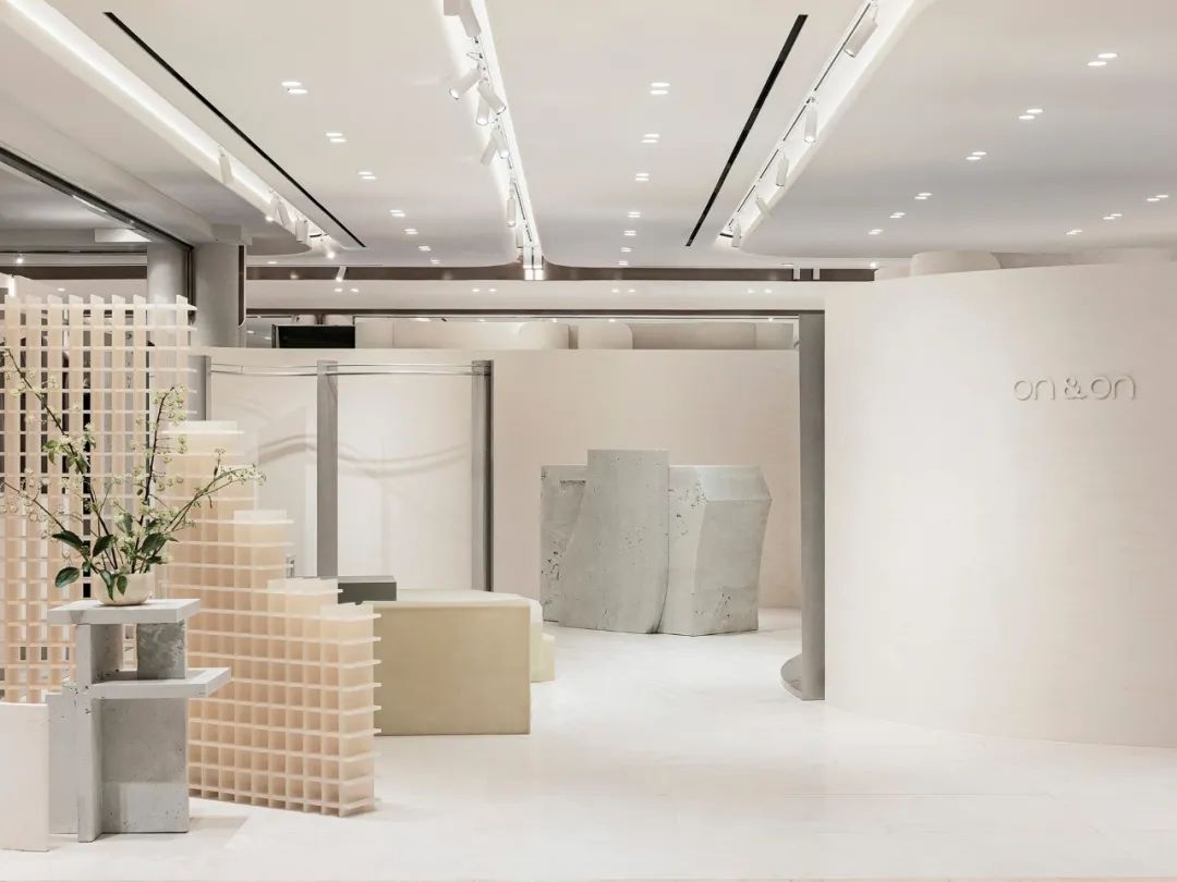 Cov Studio新作,ON&ON,這是一個表達當代年輕女性氣質的品牌。為了讓開放感大的百貨店看起來像品牌的單體店,墻體相連,讓你完全沉浸在店內。以“Layer on Layers”為關鍵詞,以能夠呈現灰白色調和對比的材料為重點的物體形式的家具一一呈現。