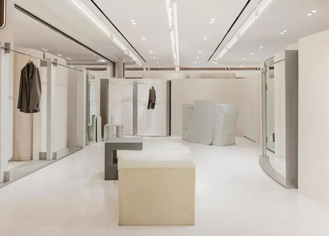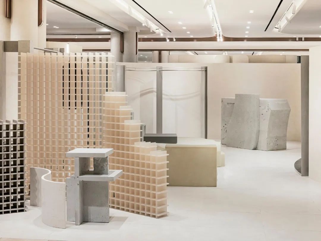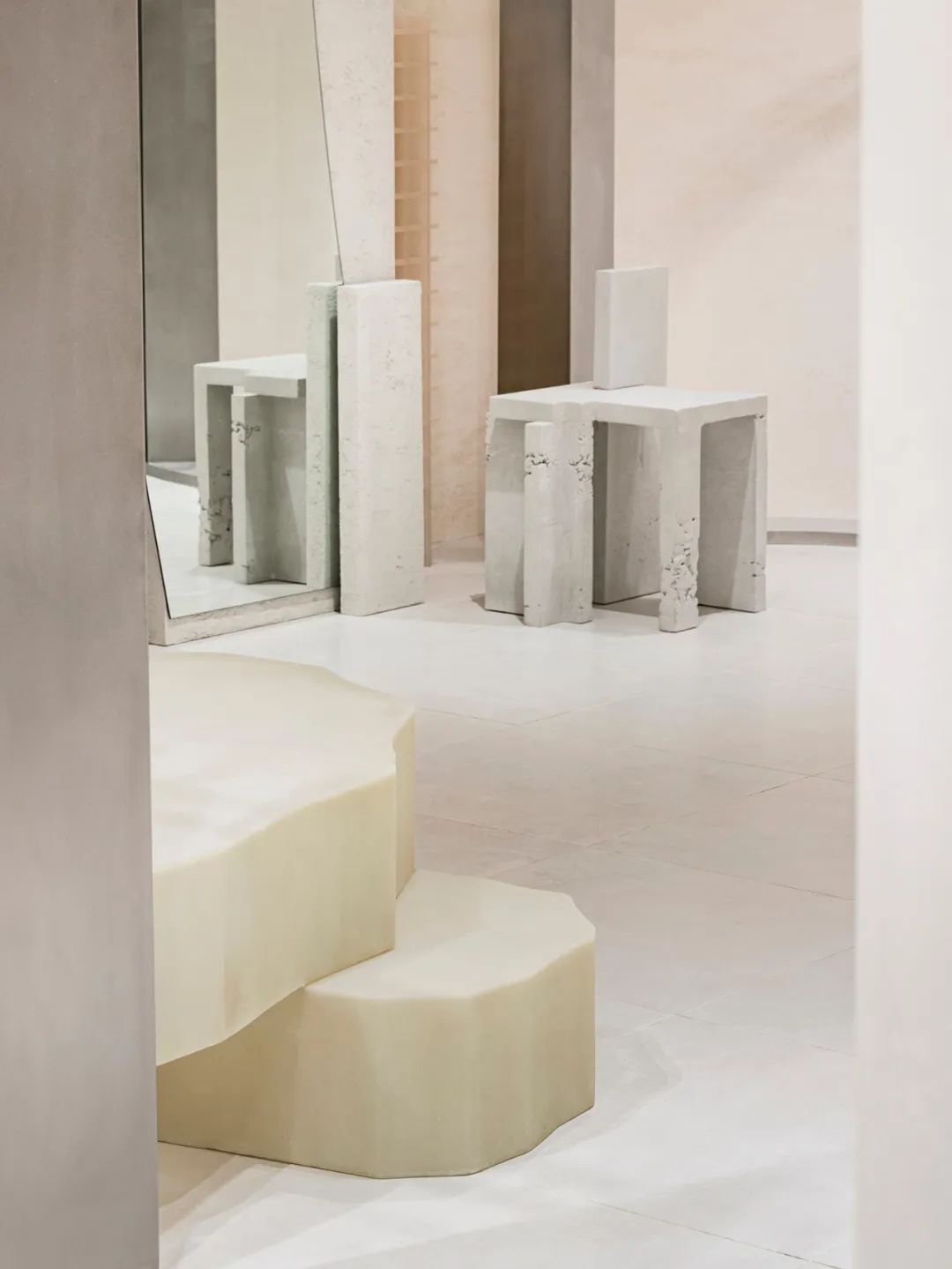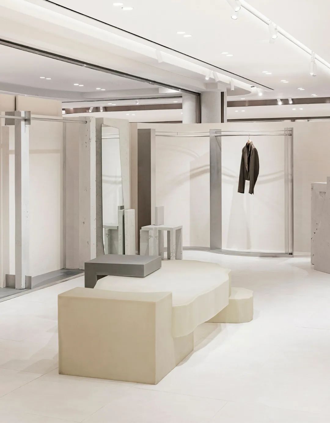 Cov Studio新作,ON&ON,這是一個表達當代年輕女性氣質的品牌。為了讓開放感大的百貨店看起來像品牌的單體店,墻體相連,讓你完全沉浸在店內。以“Layer on Layers”為關鍵詞,以能夠呈現灰白色調和對比的材料為重點的物體形式的家具一一呈現。