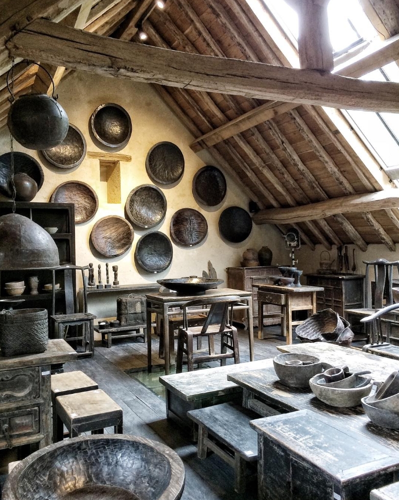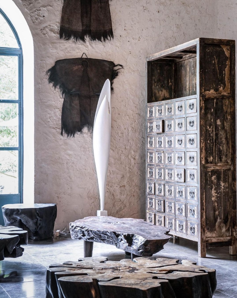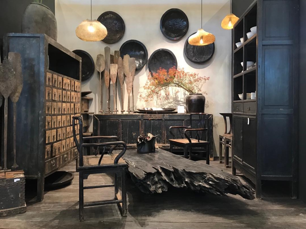 也有一些人把它們搬進了自己的書房、茶室、工作室等比較私密的“文化空間”,在抹去灰塵的遮掩之后,老家具的氣質更是得到了升華,有一種包漿的視覺錯感在整個空間散發開,仿佛房間穿越了幾個世紀一樣。